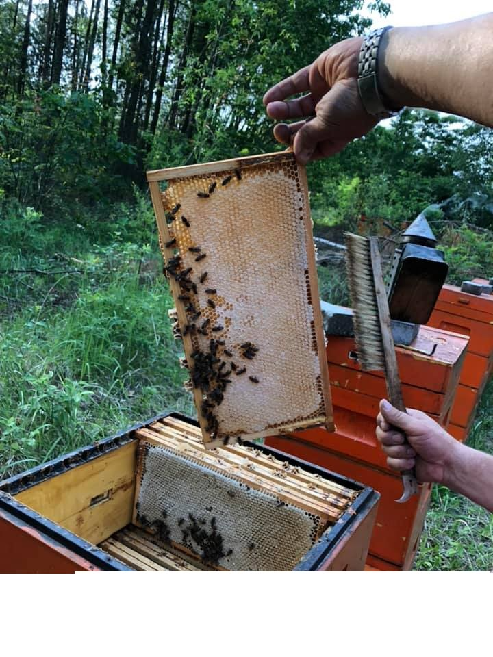 W pasiece stacjonarnej zajmuję się hodowlą matek pszczelich na własne potrzeby w ulikach odkładowych i weselnych oraz pozyskiwaniem pyłku. Sprzedaż produktów pszczelich z mojej